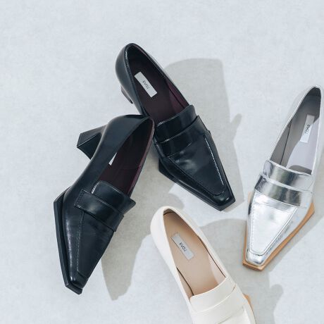大人気のローファーパンプスがON・OFF問わず履けるようアップデートして登場!踵に芯を入れることでホールド感のある履き心地になり、より幅広いシーンで着用いただけるよう仕上げました!シンプルながらもエッジの効いたコバとやや長めのつま先で他にはないEVOLらしいデザイン!約6cmのヒールは幅があり安定感抜群で、ふかふか肉厚な中敷きを合わせることで長時間の着用でも疲れにくさ◎シーズンレスで履けるアイテムは1足持っておくと大活躍すること間違いなしです!