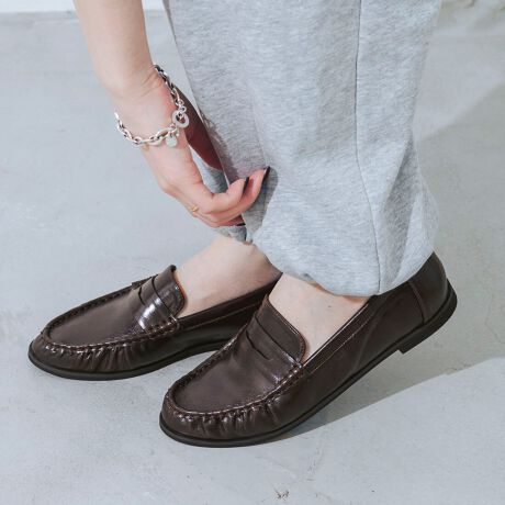 クシュっとしたギャザーディテールがポイントのローファーが登場!デイリー使いしやすいベーシックデザインだからこそ、柔らかく足馴染みの良い素材を使用しソフトな履き心地に仕上げました。つま先から踵までふかふか弾力のある中敷き入りで、フラットソールでも足裏への負担が軽減され疲れにくいのも魅力の1つ!甲の深い部分まで足を覆ってくれるので、ホールド感抜群で歩きやすくたくさん歩く日にもおすすめ◎シーンやシーズン問わず履けるローファーは、ワードローブに1足は持っておきたいマストアイテムです!