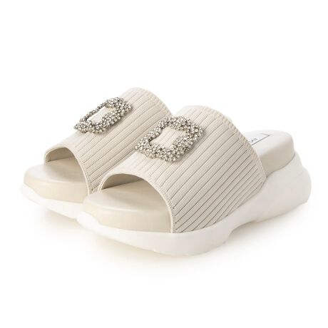 キラキラと上品に輝くバックルが夏のコーディネートを格上げしてくれるビジュースポサン!甲深のニットアッパーには裏地付きで、程よいハリ感がありミュールタイプでもホールド感抜群の履き心地です。スッと履けるデザインで楽に着脱出来るのもミュールならではの嬉しいポイント◎超軽量な厚底ソールと、ふかふかもちもちした新感覚の中敷きは、1度履いたら病みつきになること間違いなし!カジュアルから綺麗めまで、幅広いコーディネートに合わせやすい優秀アイテムです。