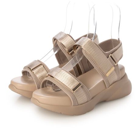 スポーティーなのに上品見えするゴールド金具がアクセントのスポサン!ボリューム感が今っぽい厚底ソールは驚くほど超軽量で、ふかふかもちもちした新感覚の中敷きが足裏をしっかりサポート◎マジックテープ式のベルトは、お好みのフィット感に合わせて履けるのはもちろん、簡単に着脱出来るのも嬉しいポイントです。シンプルデザインでどんなスタイリングにも取り入れやすく、1足持っておきたい夏のマストアイテム!春先はソックス合わせで履くのもおすすめです。