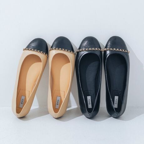 高級感のある華奢なチェーンと切り替えデザインがクラシカルで上品なバレエパンプス!フラットながらも足をすっきり美脚に見せてくれます。つま先から踵までふかふかの中敷き入りで、歩行時の足裏の衝撃を軽減◎ソフトで柔らかい足当たりと指先ゆったりのラウンドトゥで、長時間の着用でもストレスフリーな履き心地です。スカートやワンピース合わせはもちろん、デニムでカジュアルダウンして履くのもおすすめ!