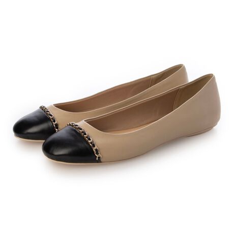 高級感のある華奢なチェーンと切り替えデザインがクラシカルで上品なバレエパンプス!フラットながらも足をすっきり美脚に見せてくれます。つま先から踵までふかふかの中敷き入りで、歩行時の足裏の衝撃を軽減◎ソフトで柔らかい足当たりと指先ゆったりのラウンドトゥで、長時間の着用でもストレスフリーな履き心地です。スカートやワンピース合わせはもちろん、デニムでカジュアルダウンして履くのもおすすめ!