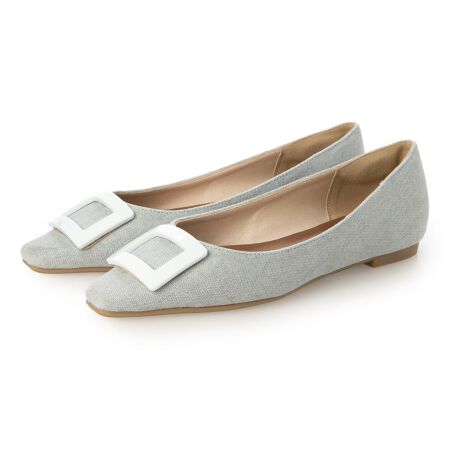 【26春夏新作】 【ふかふか・クッション入り】スクエアバックルフラットパンプス JA5898