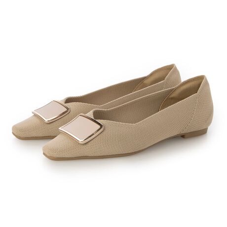 ストレスフリーな履き心地が大人気のニットシリーズに新デザイン登場!高級感漂うメタルフレームのバックルが足元に上品さをプラス。シャープなシルエットとVカットデザインが相性良く、ローヒールでもすっきり美脚に見せてくれます。ニット素材は柔らかいだけでなく、通気性に優れていて蒸れにくいのも魅力の1つ!もちもちの中敷きと滑りにくいソールが足をしっかりサポートし、踵パッド付きで歩行時でも踵のパカパカ浮く感じを軽減してくれるのも嬉しいポイントです。普段使いはもちろん、通勤通学や立ち仕事の方にもおすすめ◎1度履いたら病みつきになること間違いなしの優秀アイテムです!