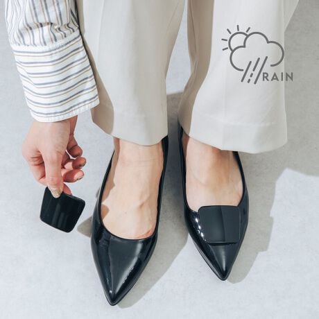 【26春夏新作】 【晴雨兼用・ふかふか】晴雨兼用スクエアバックルパンプス JA5917