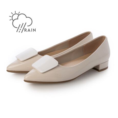 ブラック・アイボリーエナメルは晴雨兼用対応。天気に左右されずいつでも履ける晴雨兼用パンプス!シャープなルックスできちんと感があり、スクエア型バックルは取り外し可能でシーンに合わせて着用いただけます。つま先から踵まで肉厚でクッション性のある中敷き入りで、ふかふか柔らかく優しい履き心地!滑りにくいソールを使用しているので、安心して履けるのも嬉しいポイントです。