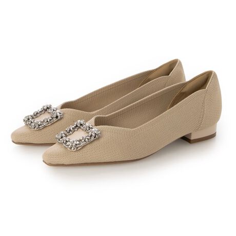 【26春夏新作】 【柔らかい・クッション】ビジューバックルソフトニットVカットパンプス JA5926