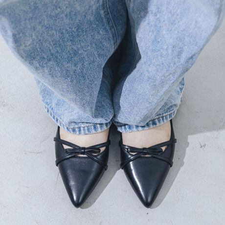 【26春夏新作】 【ふかふか・クッション入り】ポインテッド2cmリボンパンプス JA5956
