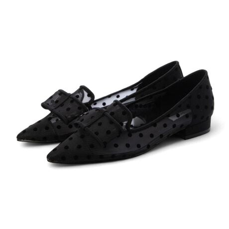 コメント:足長23.8cmの私でも普段着用する23.5cmで少しゆとりのある履き心地でした。素足だと大丈夫ですが、ストッキングでの着用だと若干かかとが浮きそうな感覚があります。24.0cmはかかとが抜けてしまいました。チュール素材も柔らかめで履き馴染みも出てくると思うので、サイズは隙間なくぴったりめの方がフィットして歩きやすいです。足幅が狭い方やストッキングで着用される方はワンサイズ下げても履けると思います。