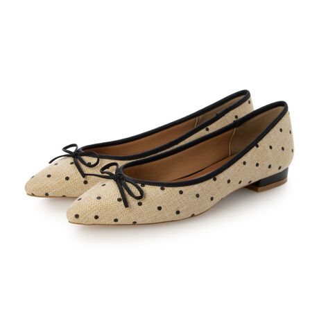 大ヒットしたバレエシューズ春夏の季節感溢れる素材になって登場!シャープなポインテッドトゥで可愛らしくなり過ぎず、足元をすっきり大人っぽく見せてくれます。つま先から踵までもちもちの中敷き入りで、靴の内側にもふわふわ柔らかい素材を使用し、足への負担を軽減して優しい履き心地◎春夏らしいグリッター、控えめで大人可愛いドット、どのカラーもコーディネートにスッと馴染み、ワードローブに1足持っておくとヘビロテ間違いなしのアイテムです!