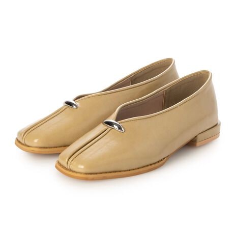 【26春夏新作】 【柔らかい・22.0-25.0cm】スクエアメタルフラットパンプス JA5977