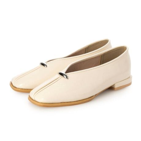 【26春夏新作】 【柔らかい・22.0-25.0cm】スクエアメタルフラットパンプス JA5977