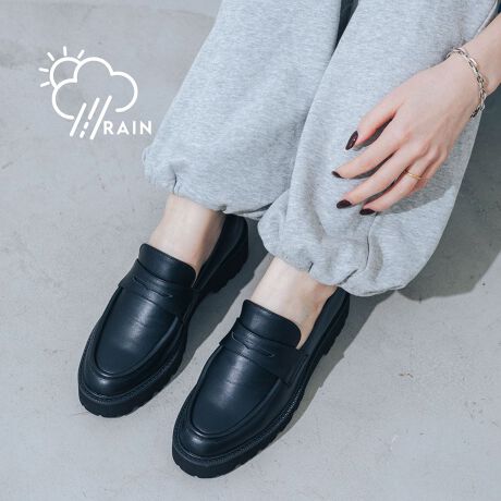 旬のトラックソールを合わせた厚底ローファー!見た目以上に軽量で疲れにくく、甲深デザインでホールド感もあり足運びしやすいよう仕上げました。ボリューム感のある厚底ソールは、美脚効果はもちろんボトムスとのシルエットバランスも◎晴雨兼用で天気を気にせず履けるのも嬉しいポイントです。シンプルでシャープなルックスなので、普段使いだけでなく通勤通学にもぴったり。靴下合わせでスタイリング楽しむのもおすすめです!