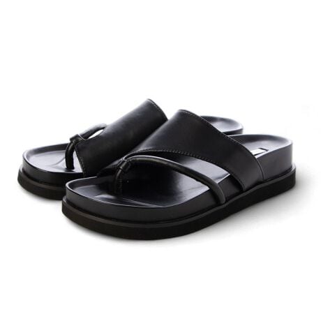 スタイリッシュなカットラインがモードな雰囲気漂うトングサンダル!上質なツヤ感のアッパーは、足馴染みが良く甲の深い部分まで足をホールドしてくれて歩きやすさ◎指の付け根部分まで柔らかいのも嬉しいポイント!程よいボリューム感の厚底ソールは驚くほど軽量で、テーマパークや旅行などのたくさん歩く日にもぴったり◎どんなコーデにもモードなアクセントをプラスしてくれる1足。