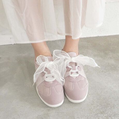 スポーティーなスニーカーに、バレエコアの甘さをプラスした今っぽいデザイン。