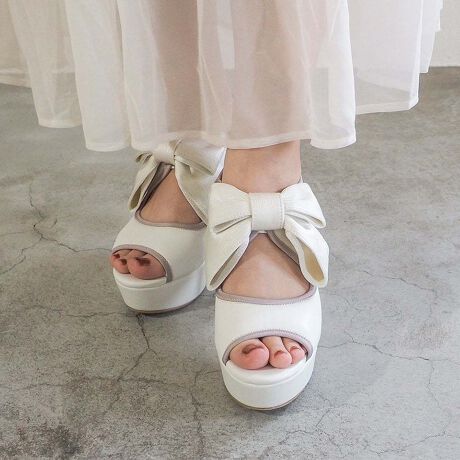 大きなリボンが目を惹く、厚底オープントゥシューティ。