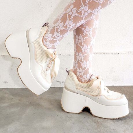 95mmの厚底でしっかり盛れる、スニーカー風マニッシュシューズ。