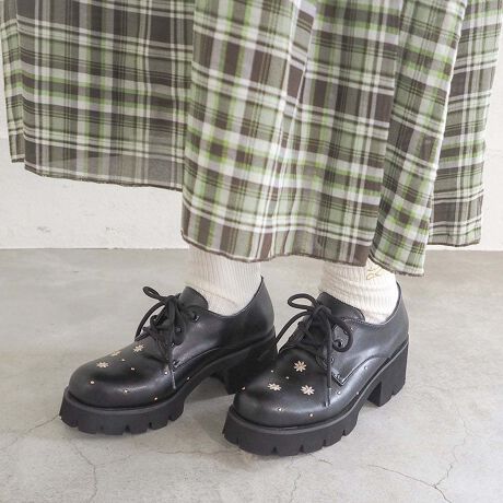 マルイウェブチャネル   /   あしながおじさん   /   シューズ   /   レースアップシューズ   /   [26春夏新作]軽量|フラワー刺繍マニッシュ