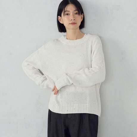 4色のカラーネップ糸を組み合わせた、春のニットにピッタリな素材です。