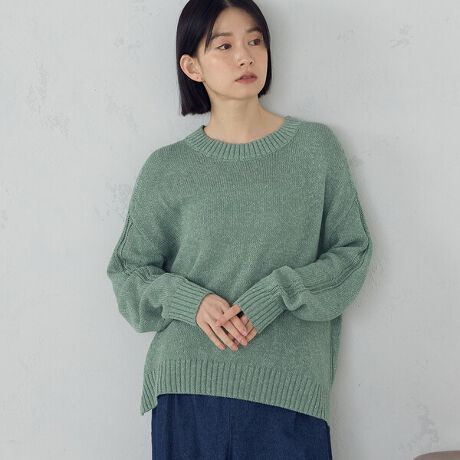ゆったりしたクルーネックで顔まわりがすっきりと見えます。