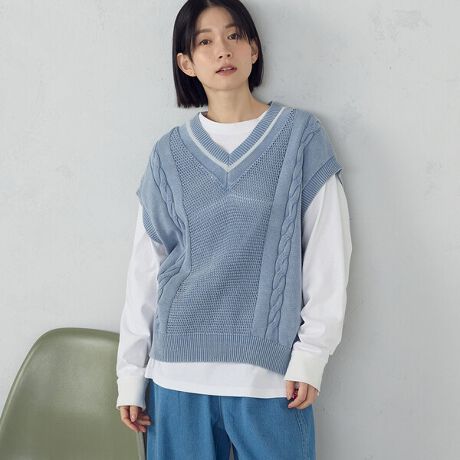 ONIGIRIで毎シーズン人気の、デニム調のニットベストです。