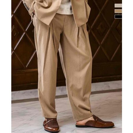 1PIU1UGUALE3 RELAX リネンブレンドディープタックワイドパンツ【LEON掲載】