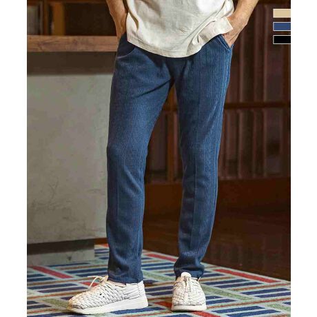 落ち感のある麻混素材をジャガード編みで表情豊かに仕上げたスラックス。