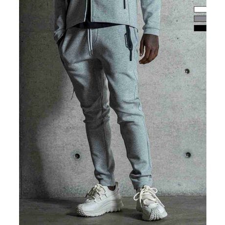 左右非対称に配置したファスナーポケットがシャープな表情のジョグパンツ。