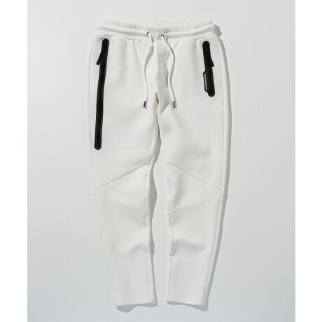 左右非対称に配置したファスナーポケットがシャープな表情のジョグパンツ。