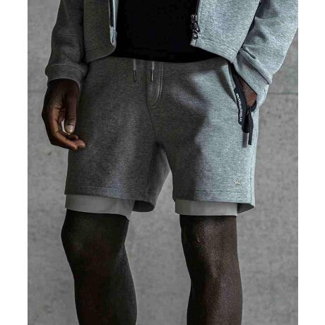 左右とバッグに配置したファスナーポケットがシャープな表情のインナー付きショートパンツ。