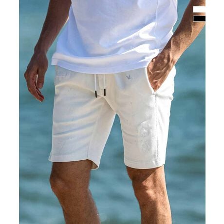 デニムライクな見た目とスウェットの軽快な着心地を両立するジョグデニムを採用したハーフパンツ。