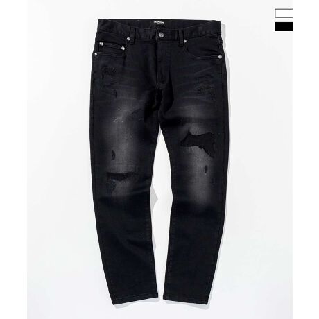 薄く散らしたペイント加工とこだわりのダメージが、やりすぎない大人のこなれ感を演出。