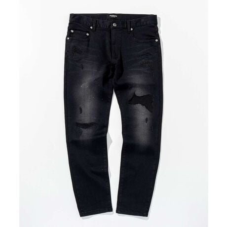 薄く散らしたペイント加工とこだわりのダメージが、やりすぎない大人のこなれ感を演出。
