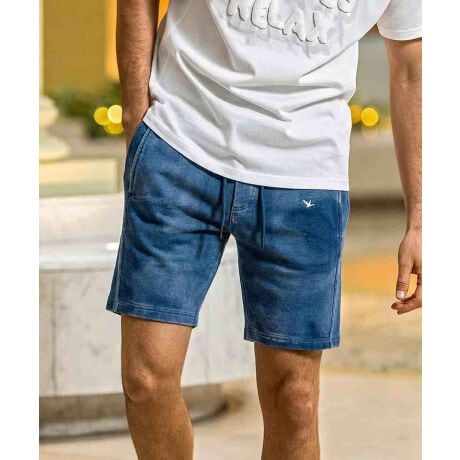 ブランドアイコンとなるカモフラージュ柄にインディゴ染めのニュアンスを掛け合わせたハーフパンツ。