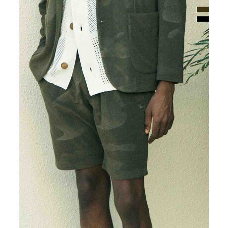 1PIU1UGUALE3 RELAX カモ柄エンボスパイルハーフスラックス