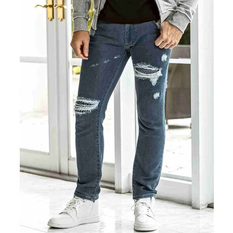 1PIU1UGUALE3 RELAX ラインストーンダメージジョグデニムパンツ