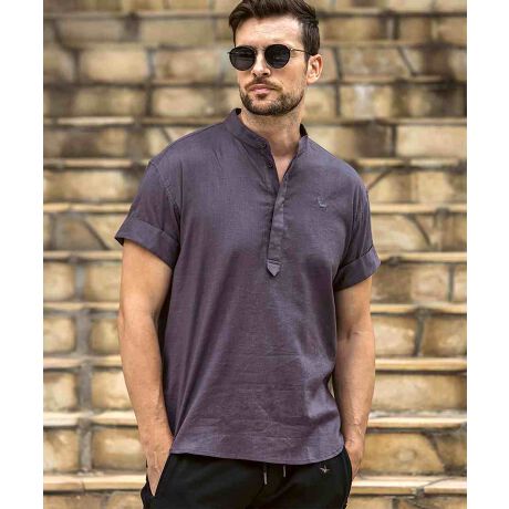 1PIU1UGUALE3 RELAX リネンブレンドヘンリーネック半袖シャツ