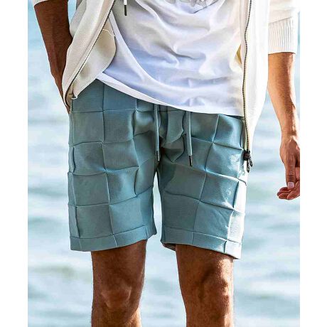 編み込んだような立体的なブロックデザインがクラス感を漂わせる、オリジナルテキスタイルで仕立てたショートパンツ。
