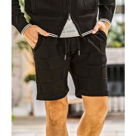 編み込んだような立体的なブロックデザインがクラス感を漂わせる、オリジナルテキスタイルで仕立てたショートパンツ。