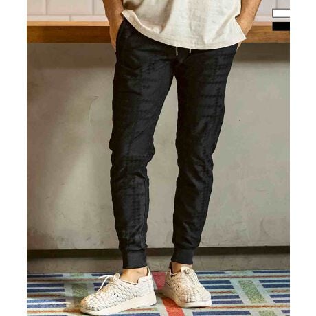 1PIU1UGUALE3 RELAX ランダムハウンドトゥースジャガードジョガーパンツ