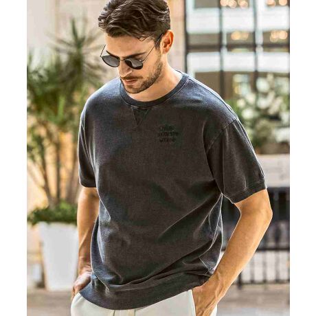 1PIU1UGUALE3 RELAX ロゴ刺繍ピグメントスウェットTシャツ
