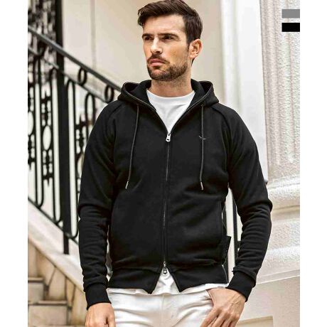 カットオフのニュアンスとアウトステッチがクラフトなムードを演出するスウェットパーカー。