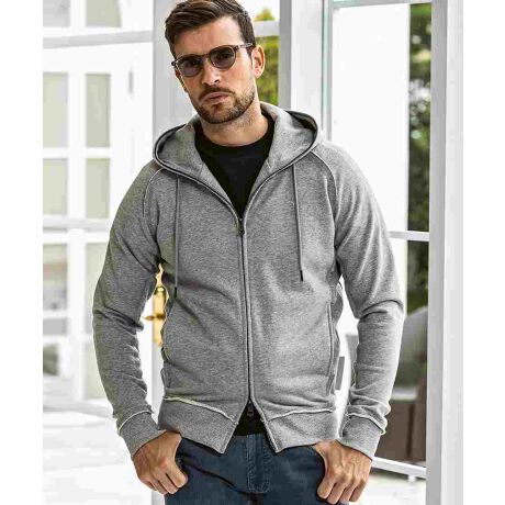 カットオフのニュアンスとアウトステッチがクラフトなムードを演出するスウェットパーカー。