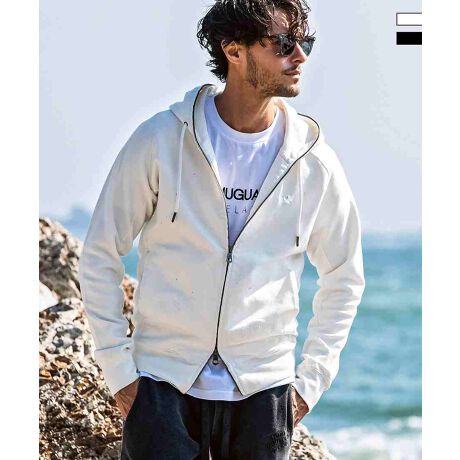 デニムライクな見た目とスウェットの軽快な着心地を両立するジョグデニムを採用したジップアップフーディー。