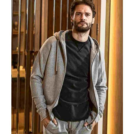 光沢のある糸で刺繍したブランドロゴが上品な艶感を放つスウェットパーカー。