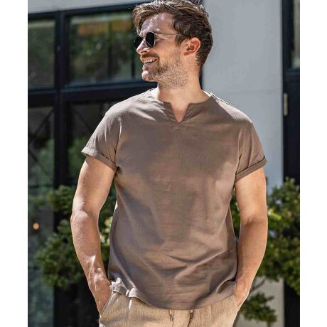 麻混素材ならではのドライな質感により、汗ばむ季節でも肌離れが良く、ノンストレスで軽快な着心地を実現しています。