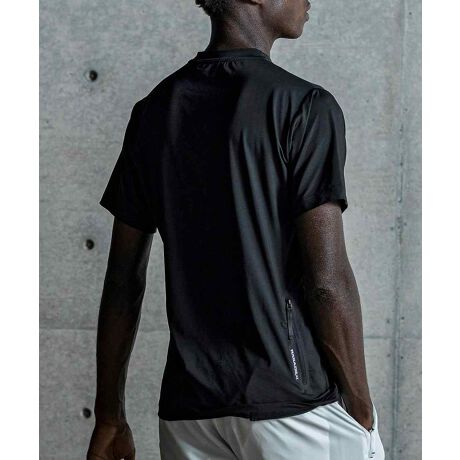 背面に配置したファスナーポケットがシャープな表情の半袖カットソー。
