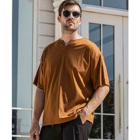 1PIU1UGUALE3 RELAX ダブルシルケットキーネックワイドTシャツ