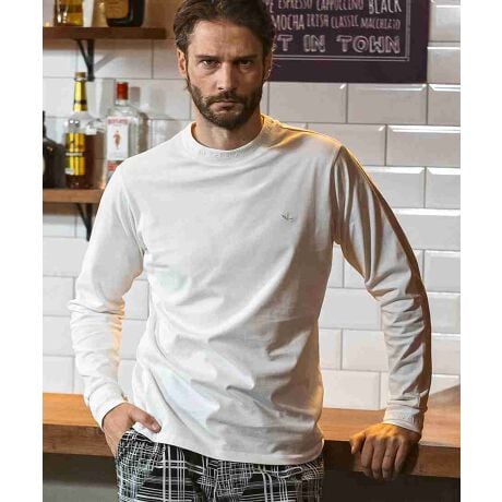 ネックと袖口にブランドロゴを印象的に使用した長袖カットソー。
