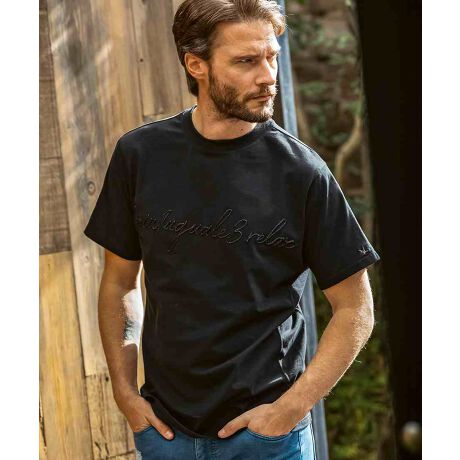 人気の筆記体ロゴをロープ刺繍であしらった半袖Tシャツ。